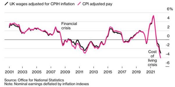 Thought this was quite a scary chart – REAL pay in the UK is falling at the fastest pace in 21 years.​